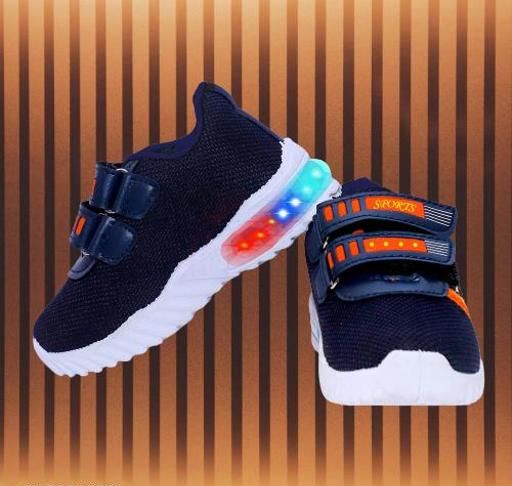 Name: Kids LED Light Shoes, LED shoes, Sneakers, Casual/Sports/Running Shoes(T51 ORANGE) Material: Mesh Sole Material: Eva Fastening & Back Detail: Buckle Brand: Prattle Foot Insole: Eva Character: Not Applicable Ideal For: Boys Pattern: Solid Net Quantity (N): 1 The shoes would light up every step with on-off led shoe features. These long-forgotten legendary shoes have finally made a comeback! Now, your kids can brag and show off their very own ledshoes which are lightweight, comfortable and stylish. Round toe, cushioned foot-bed, anti-skid eva sole, led light up heel, made from breathable mesh, produced using kid-safe materials that do not irritate the skin nor weigh down wearer. Disclaimer: Batteries are not replaceable. Bold N Elegant fashionable light up shoe, since it is made of Synthetic, it is very lightweight breathable and comfortable and can be your kids favorite sport shoe. Your little one will love it because of its invigorating color-changing lighting effect, as well as the stylish appearance. Get stylish pair of Footwear from the house of Tiny Kids is a perfect choice for your baby's first steps. With its attractive design and bright colors, it's a must have for your baby's wardrobe. It is very light- weight, durable, comfortable and easy to clean. Made in India Sizes: 2-2.5 Years, 2.5-3 Years, 3-3.5 Years, 3.5-4 Years Country of Origin: India