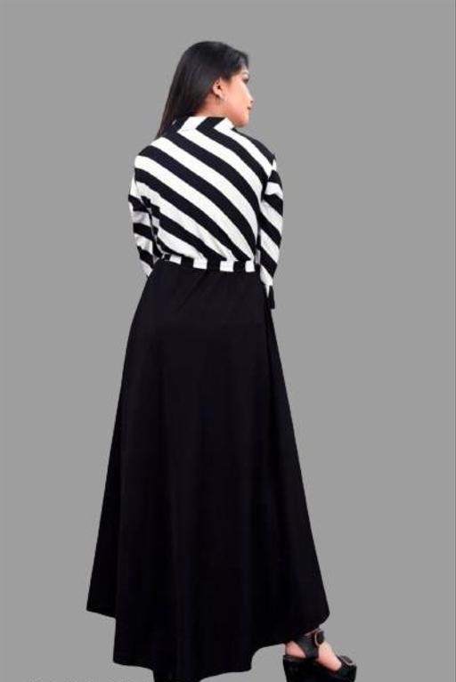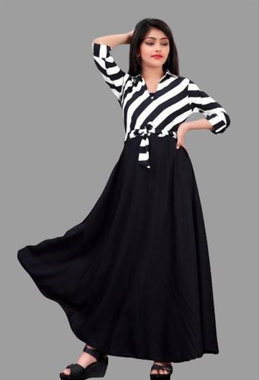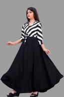 Name: cute modern classy girls frocks & dresses | black and white striped top, black skirt, A-line silhouette, two-toned top and skirt, A-line, dress, A-line maxi dress, tie waist, three-quarter, polo/collar, tie waist, curved, maxi, unlined, Girls