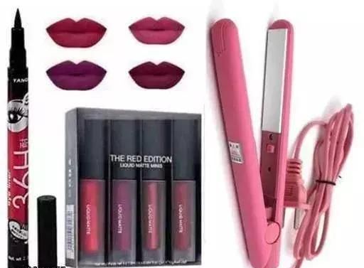 Product Name: Lizaaiconic's Red Edition Lipstick 36h Eyeliner Professional Hair Straightener (8 ITEMS IN THE PACK)