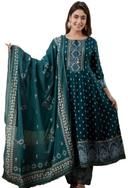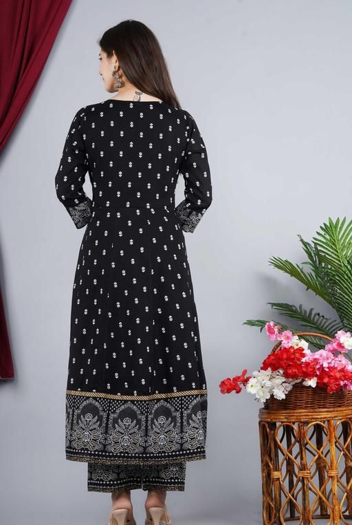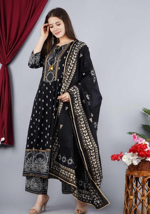 Name: Women Rayon Printed Anarkali Duaptta Set With Plazzoo