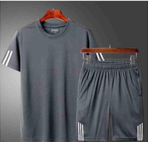 Name: Grey Half Sleeves Round Neck Polyester Blend Tshirt and Grey Shorts Bottom wear for Men || Co-ord set for men || Tracksuit for men || Loungewear Tshirt and Nikkar for men ( Pack of 1 )