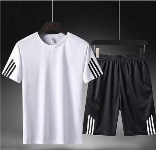 Name: White Half Sleeves Round Neck Cotton Blend Tshirt and Black Shorts Bottom wear for Men || Co-ord set for men || Tracksuit for men || Loungewear Tshirt and Nikkar for men ( Pack of 1 )
