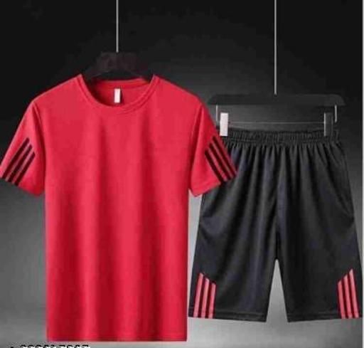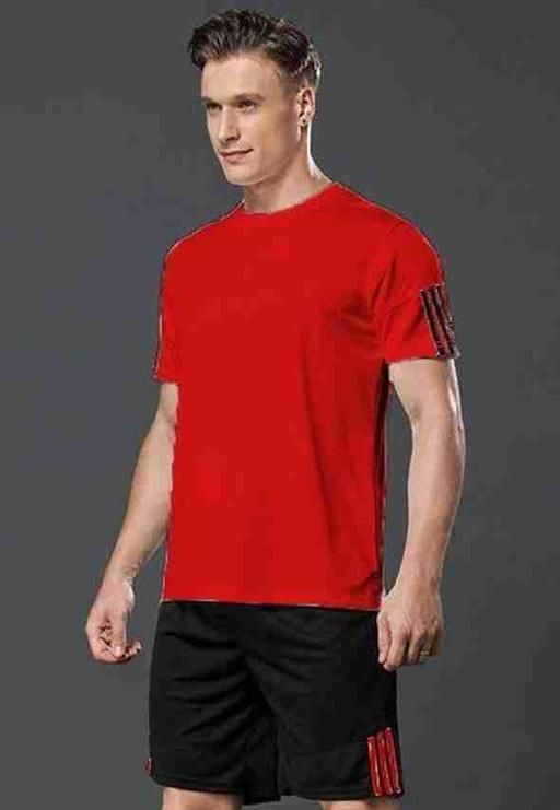Name: Red Half Sleeves Round Neck Polyester Blend Tshirt and Black Shorts Bottom wear for Men || Co-ord set for men || Tracksuit for men || Loungewear Tshirt and Nikkar for men ( Pack of 1 )