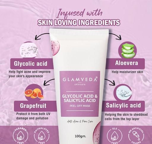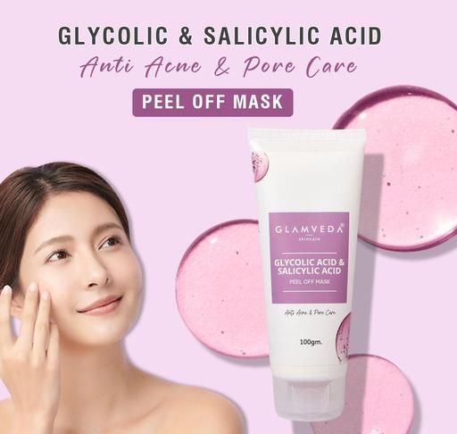Name: Glycolic & Salicylic acid Anti Acne Peel off Mask For Women | Reduces Blackhead & Pore care | For Oily & Acne Prone Skin | No Paraben, SLS | 100gm "Product Name: Glamveda Glycolic & Salicylic acid Anti Acne Peel off Mask For Women | Reduces Blackhead & Pore care | For Oily & Acne Prone Skin | No Paraben, SLS | 100gm Brand Name: Glamveda Type: Masks & Peels Net Quantity (N): 1 The glycolic acid & salicylic acid anti-Acne face peel off mask is best suited for those who have oily skin and face, frequent acne breakouts. The peel off mask unclogs pores, protect and brighten your skin. It balances the sebum levels in the skin. The natural ingredients present in the peel off mask help in balancing the excess oils and improves the elasticity of the skin making it less prone to open pores, scars and acne. The fruit extracts included in the formulation hydrates the skin, restore the moisture, the dullness and improve the skin texture. Country of Origin: India"