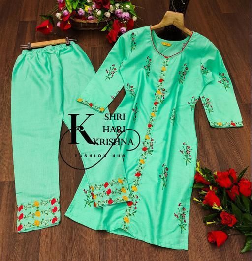 WOMEN KURTA SET WITH EMRODARY WORK FANCY KURTI WITH BOTTOM