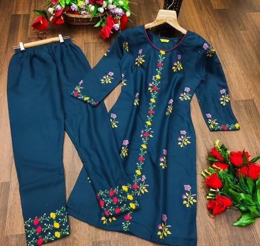WOMEN KURTA SET WITH EMRODARY WORK FANCY KURTI WITH BOTTOM