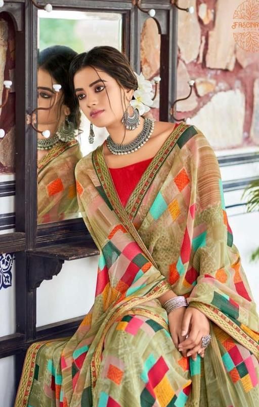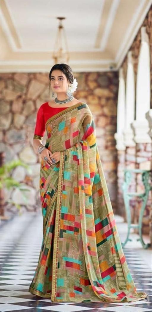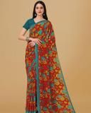 Georgette Green Saree With Blouse