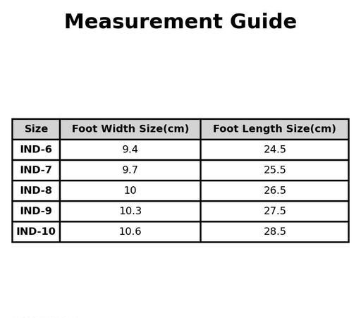 IND-6 (Foot Length Size: 25.5 cm, Foot Width Size: 9.4 cm)