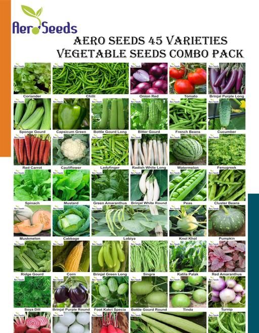 Name: Aero Seeds 45 variety vegetable seeds combo pack with instruction manual.