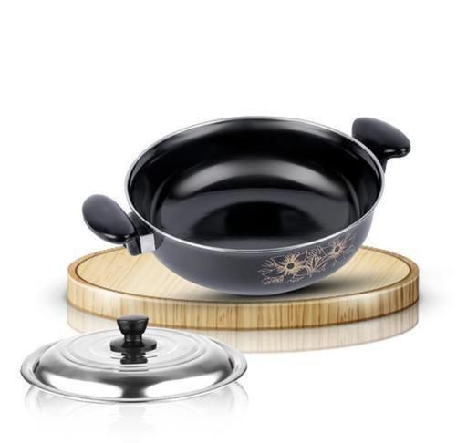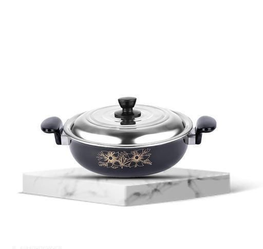 Name: Non Stick Kadhai with Lid & Heavy Bottom Base | Induction Friendly Cookware | Ceramic Hard Anodized | Useful for deep or light frying and cooking | Cook and Serve | Made of Cast Iron .