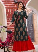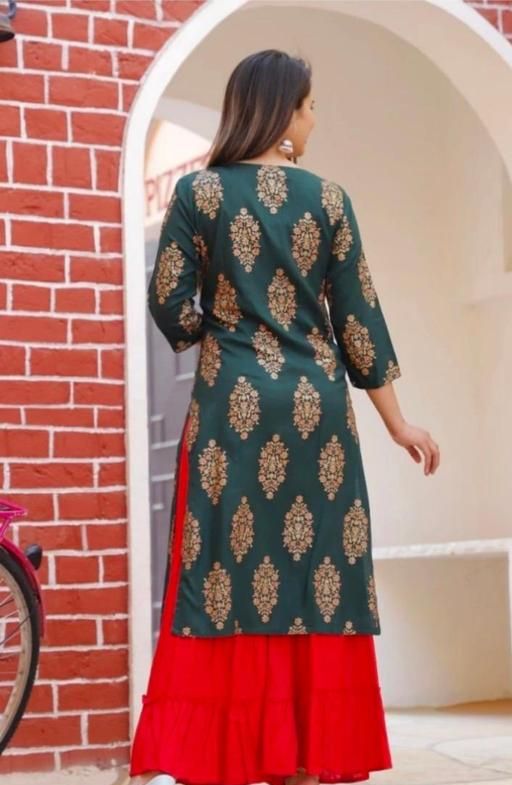 Name: Designer Casual Green Rayon Kurta Sharara Set
