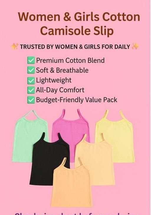 Name: Kakkad Women & Girls Cotton Camisole Slip | Premium Hosiery Cotton | Soft, Breathable & Skin-Friendly Innerwear | Lightweight, Durable & Comfortable Daily Wear | Assorted Colors (Pack of 6)