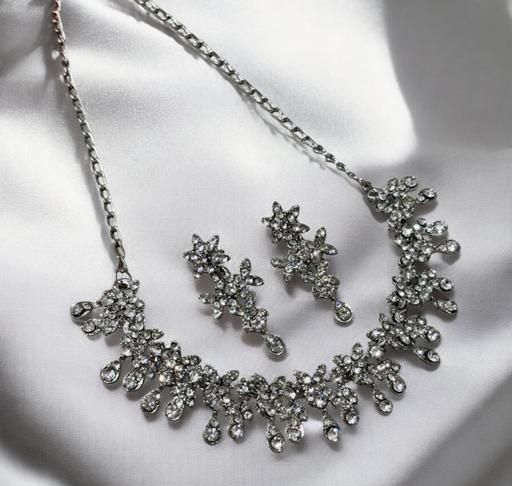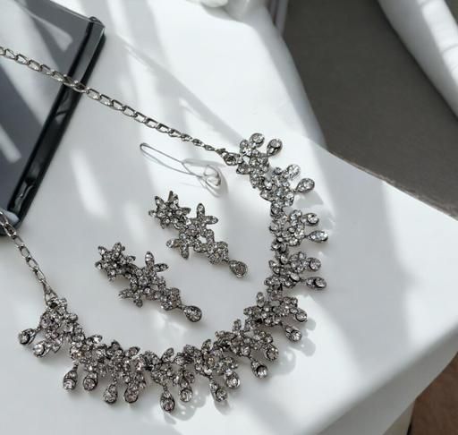 Name: Silver Plated Necklace Set With White American Diamond