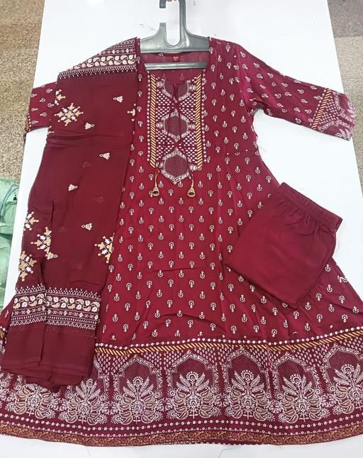 Name: Women's Rayon Printed Anarkali Kurti with Pant and Dupatta Set