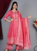 Women's Rayon Printed Anarkali Kurti with Pant and Dupatta Set