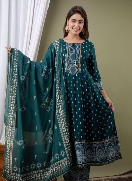 Name: Women's Rayon Printed Anarkali Kurti with Pant and Dupatta Set