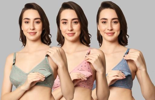 Women's Cotton Non Padded Premium Maternity/Feeding/Nursing Bra Pack of 3 ( Pieces ) .