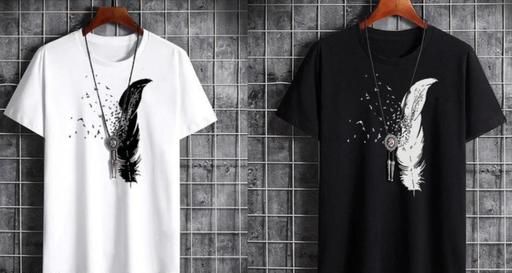 Name: Trendy Latest Premium Cotton Printed Half Sleeves Men T-shirts (Pack Of 2 White & Black)