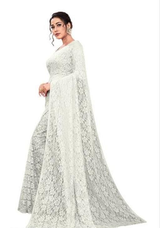 Name: Net white lace border saree with blouse