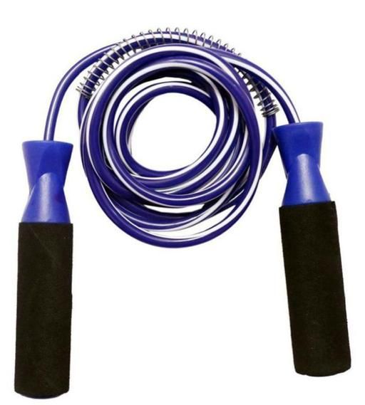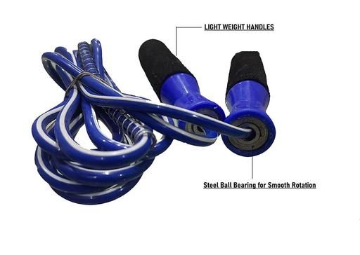 Name: EmmEmm Premium Blue Ball Bearing Skipping Rope with Foam Handle for Gym, Fitness & Exercise