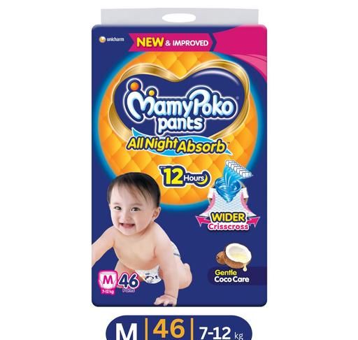 Name: Pants All Night Absorb Baby Diapers with Gentle Coco Care | Medium (M) | 46 Count - (7-12 kg)