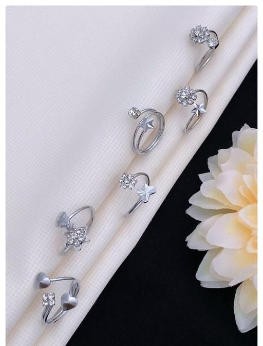 Name: Silver Plated 6 Piece White Crystal Drop Heart Multi Designs Ring Set For Women & Girls
