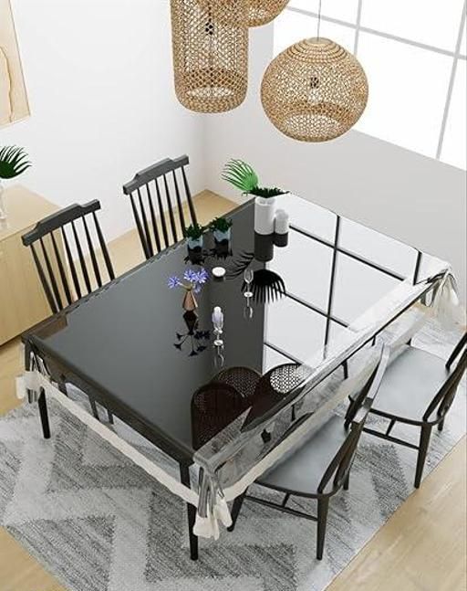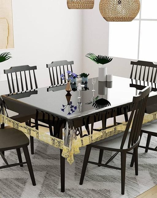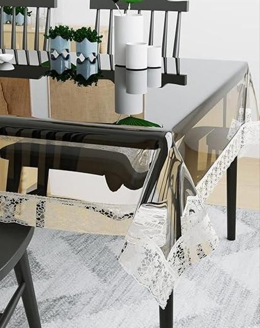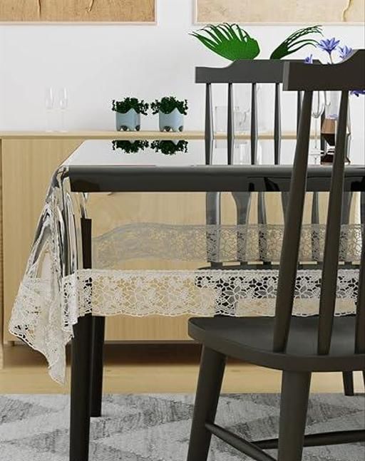 Name: Polyvinyl Chloride Durable Bordered Wipe Clean Oil Spill-Proof Waterproof Stain-Resistant Rectangular 6 Seater Dining Table Cover (Golden Lace, Transparent, 54x78)