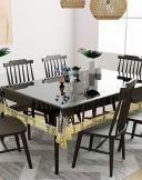 Polyvinyl Chloride Durable Bordered Wipe Clean Oil Spill-Proof Waterproof Stain-Resistant Rectangular 6 Seater Dining Table Cover (Golden Lace, Transparent, 54x78)