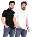 Men solid polo neck white black Regular Fit Matte Chinese Collar T-Shirt Osm (Combo of 2)black white