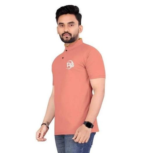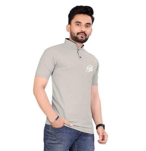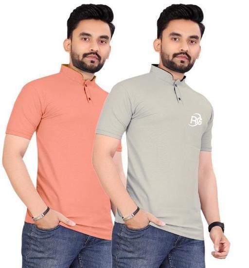 Men solid polo neck Light grey pink Regular Fit Matte Chinese Collar T-Shirt osm (Combo of 2)