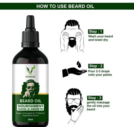 Vitracos Beard oil and Moustache Oil is specially formulated beard growth oil with Vitracos natural Beard oil like Cedarwood Oil, Sesame Seed, Almond oil, Castor Oil to promote moustache beard growth oil and Beard Growth. Beard Growth oil is very light and non sticky moustache and beard oil. Despite being non sticky beard oil men & hair growth oil, beard oil keeps beard well conditioned and shiny hair growth oil. In addition beard oil, helps to soften, hydrate and condition beard while removing dandruff. This unique Beard oil Helps hydrates the skin, improves growth of beard and moustache while conditioning the skin underneath and getting rid of itchiness. Beard oil is perfect for days in office or on weekends or even before party. If you got the guts to grow beard and moustache, do a good job of grooming beard and moustache. And use the best beard oil and moustache oil which is 100% Natural!