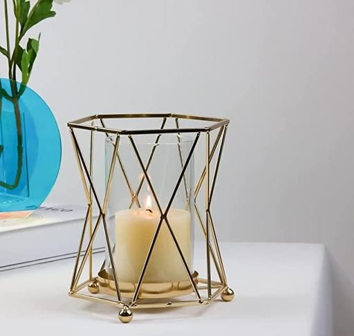 Name: Hot New Geometric Golden Tea Light Candle Holder Showpiece with Gold glass