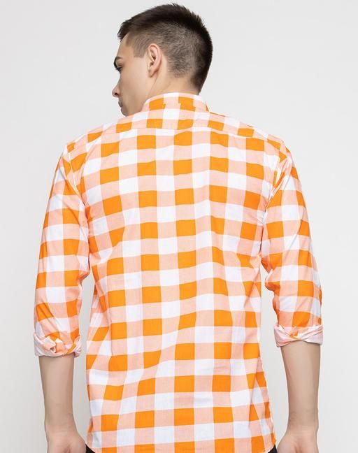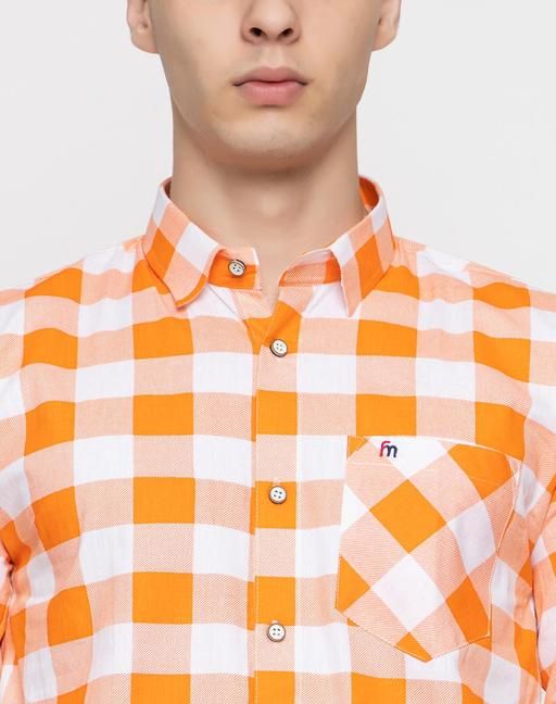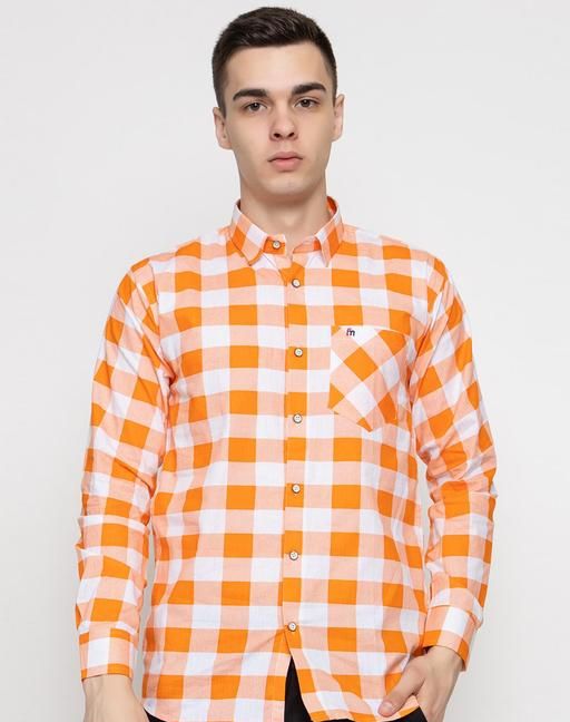 Name : FREKMAN Men's Regular Fit Checked Cotton blend Full Sleeve Spread Collar Shirt-Orange