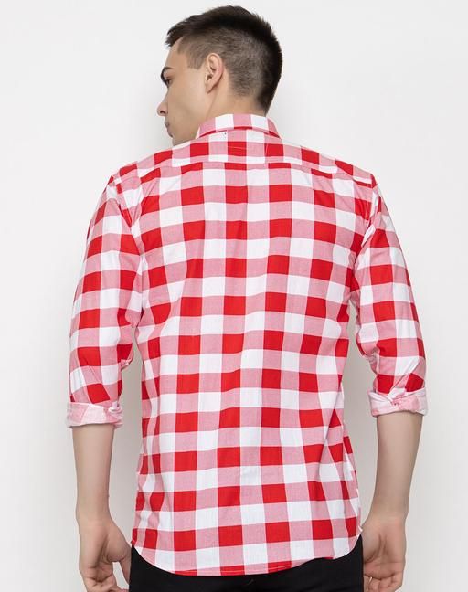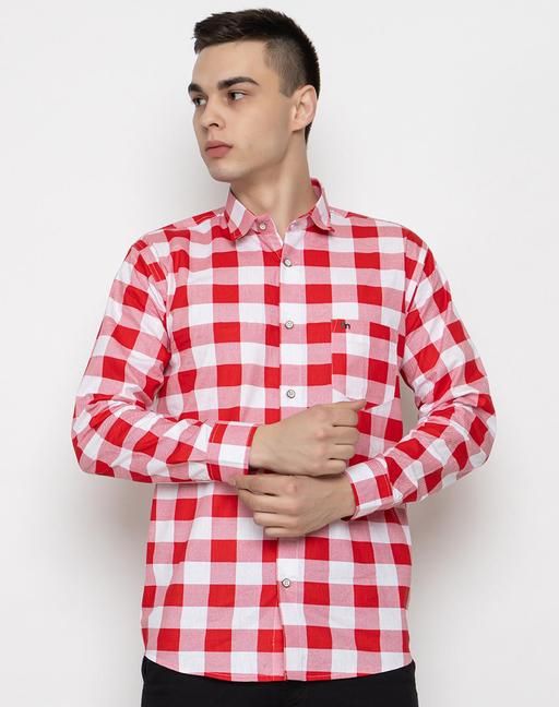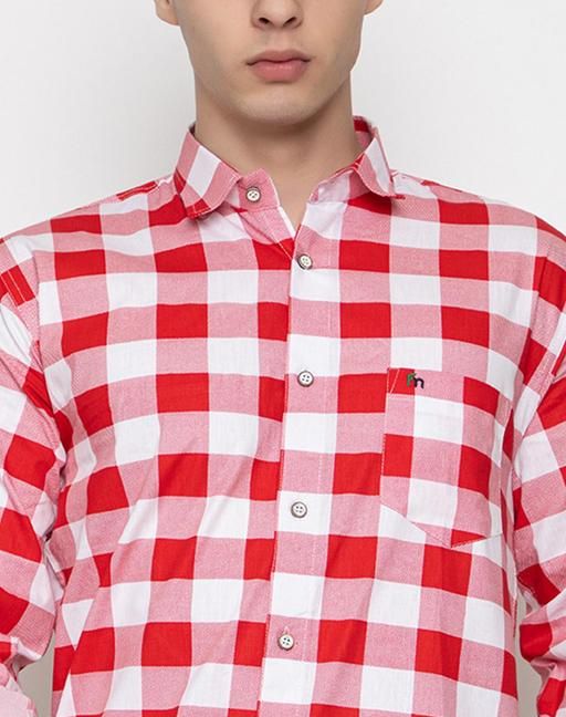 Name : FREKMAN Men's Regular Fit Checked Pure Cotton Full Sleeve Spread Collar Shirt-Red