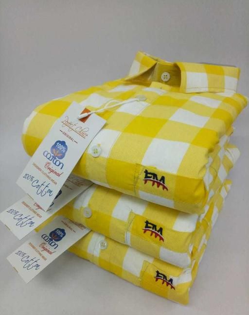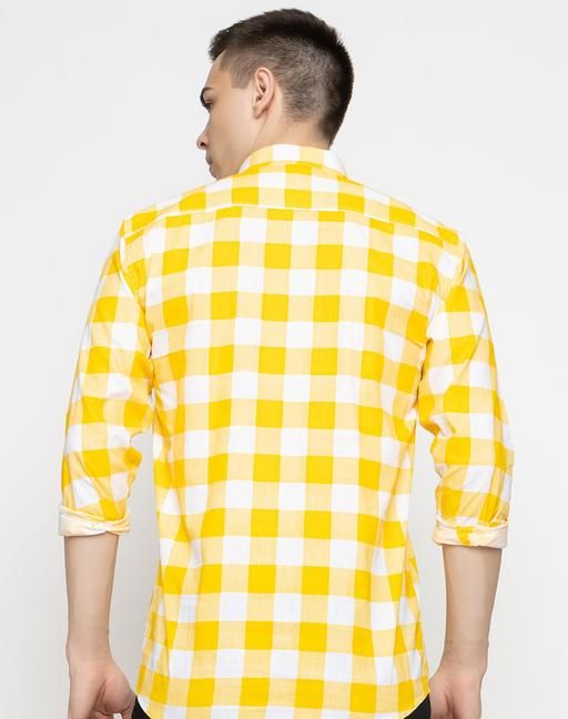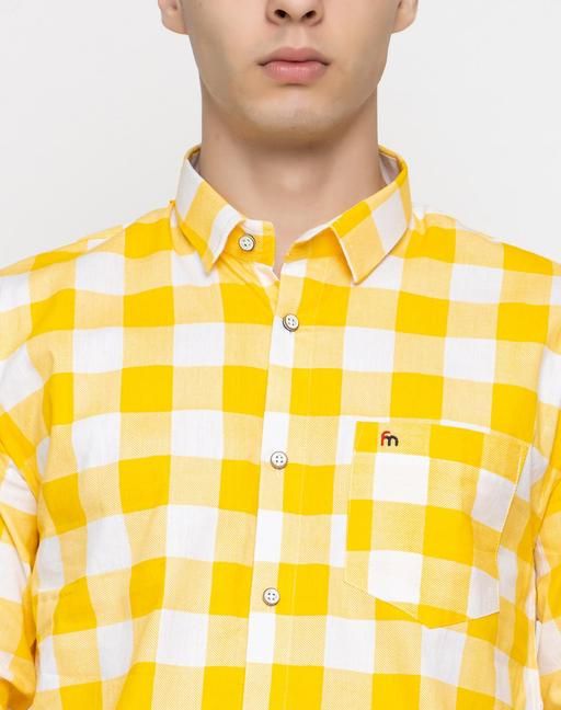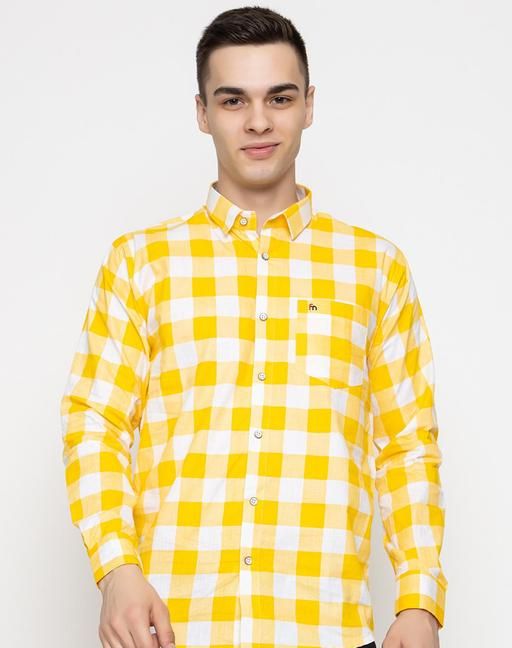 Name : FREKMAN Men's Regular Fit Checked Pure Cotton blend Full Sleeve Spread Collar Shirt-Yellow