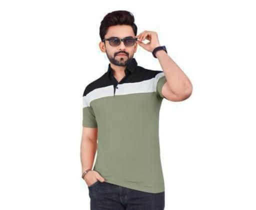 Name: Men Solid Polo Neck T Shirts Pista Black and White Patta