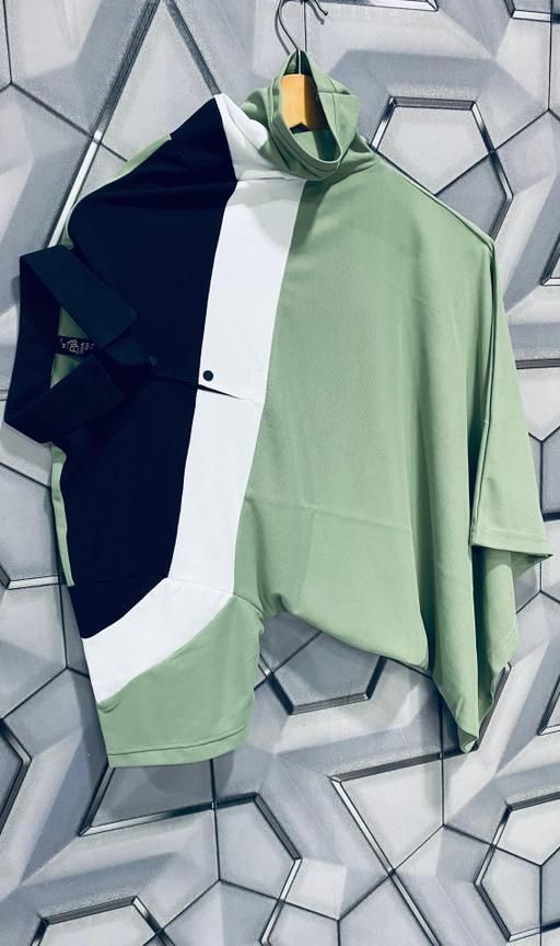 Stylish funky designing men solid polo neck White Patta Black pista T Shirt- - sports Regular fit For Men