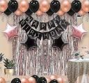 Rose Gold Happy Birthday Decoration Combo Kit for Girls 31 Pcs with Foil Curtains, HBD Banner, Star Shaped & Metallic Balloons (Rose Gold - Black)