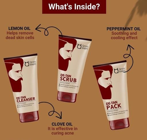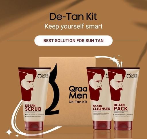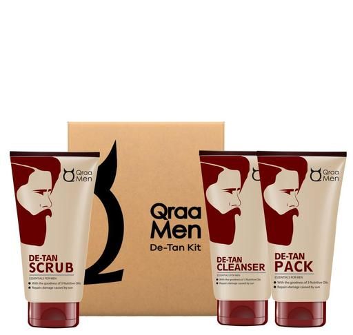 It has three exclusive products' Qraa Men De-Tan Cleanser, Qraa Men De-Tan Scrub, Qraa Men De-Tan Face Pack.