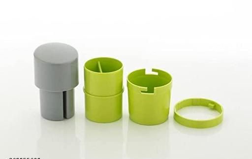 Easy Dry Fruit Slicer is made from food grade material, from virgin plastic. This slicer has dual stainless steel cutting blade. It is dishwasher safe. Also it is easy to grip and clean. Just put some part of ingredients into the container at once, roll a few times you're done.