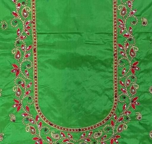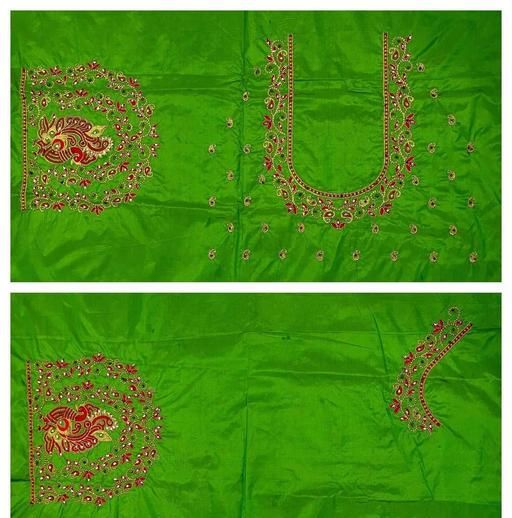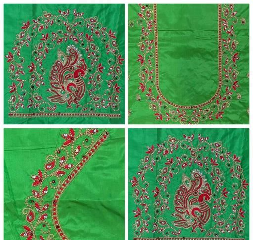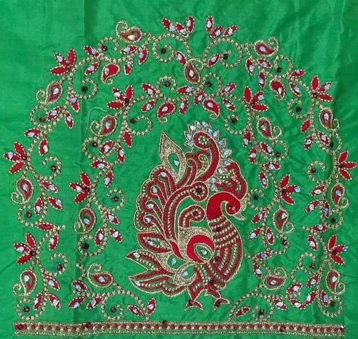 Muggam Work Pattu Cotton Silk Blouse Piece with the Special Peacock Designed by Embroidery & Hand Work with the use of beads & stones, quality of the Blouse is suitable for all Occasions. you can see slight colour differences due to photography.