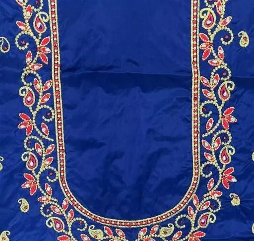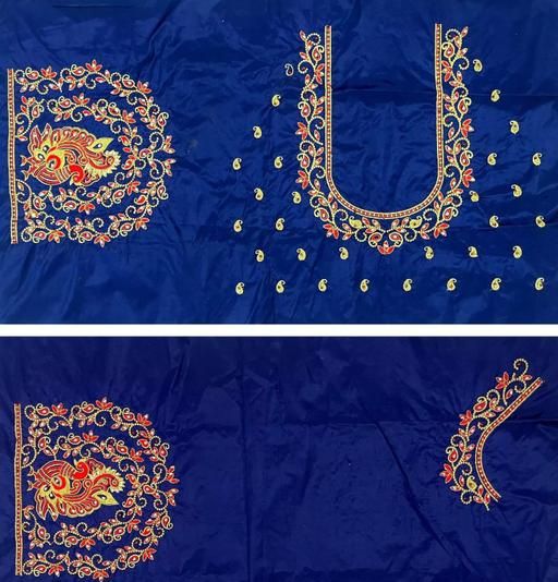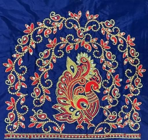 Muggam Work Pattu Cotton Silk Blouse Piece with the Special Peacock Designed by Embroidery & Hand Work with the use of beads & stones, quality of the Blouse is suitable for all Occasions. you can see slight colour differences due to photography.
