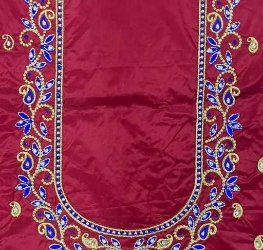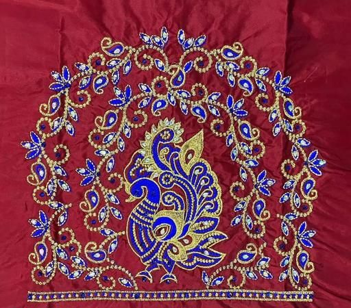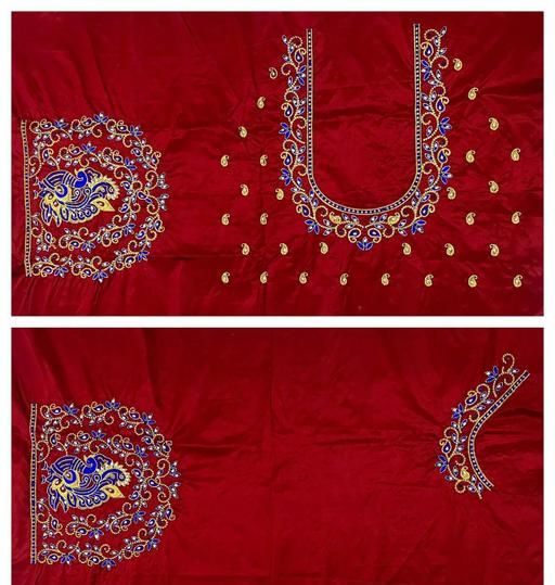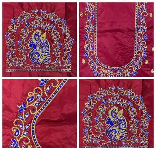 Muggam Work Pattu Cotton Silk Blouse Piece with the Special Peacock Designed by Embroidery & Hand Work with the use of beads & stones, quality of the Blouse is suitable for all Occasions. you can see slight colour differences due to photography.
