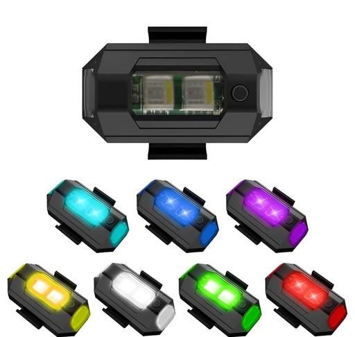 [MODES] – Flash Modes – 4 – Constant (No Flash), Slow, Normal & Fast flash strobe. 7 Light Colours - White, Blue, Red, Green, Purple, Yellow, Light Blue for all weather visibility – bad weather, rain, storm, fog etc. Airplane Light LED