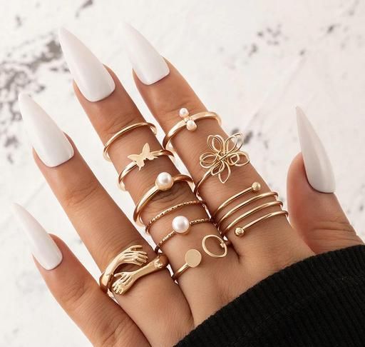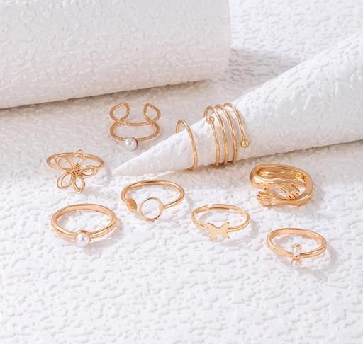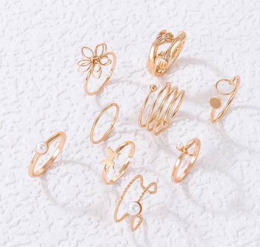 Name: Jewels Galaxy Women Set of 9 Gold Plated Adjustable Hug-Floral Finger Ring