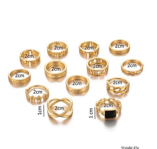 Name: Jewels Jewellery For Women Gold Plated Contemporary Stackable Rings Set of 13