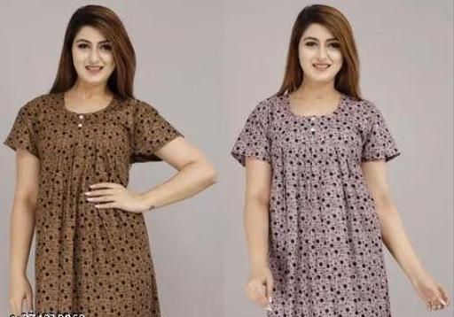 Women's Cotton Printed Nighty For Women Maxi For Nighty For Women Combo(Pack Of 2)