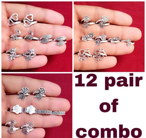 Name: Silver Tone Adjustable Toe Ring Women (12 Pairs Combo)
