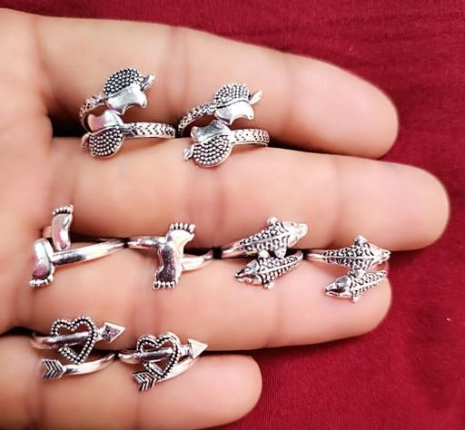 Name: Silver Tone Adjustable Toe Ring Women (12 Pairs Combo)