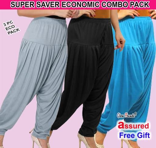 Name: WOMEN PATIALA PANT PACK OF 3 | SOFT VISCOSE FABRIC| SIZE : XL,XXL|REGULAR RELAX FIT|COLORS : BLACK-T BLUE-LT GREY